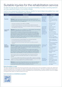 Please note: We are unable to offer our rehabilitation proposition in the Republic of Ireland, Jersey, Guernsey, or the Isle of Man, due to differing healthcare arrangements.