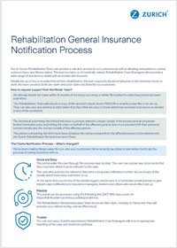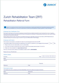 The Zurich Rehab team is a group of qualified healthcare professionals experienced in managing recovery from injuries and incidents at work. Their goal is to get you back to normal life as promptly as possible, minimising disruption to your lifestyle and work.